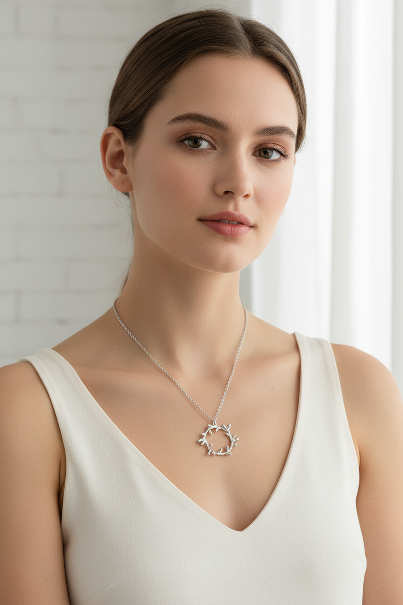 Round Silver Coral Organic Pendant