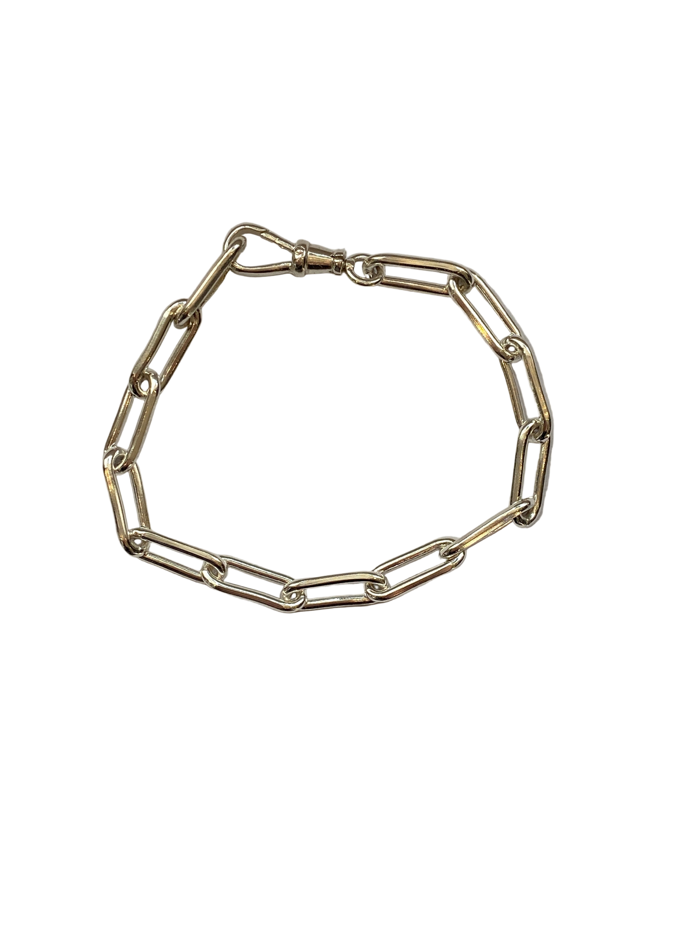 This exquisite chainlink bracelet is versatile enough to be worn alone or paired with other bangles and bracelets. With its chunky lobster clasp and 6.5" diameter, it perfectly complements the chunky chainlink necklace.