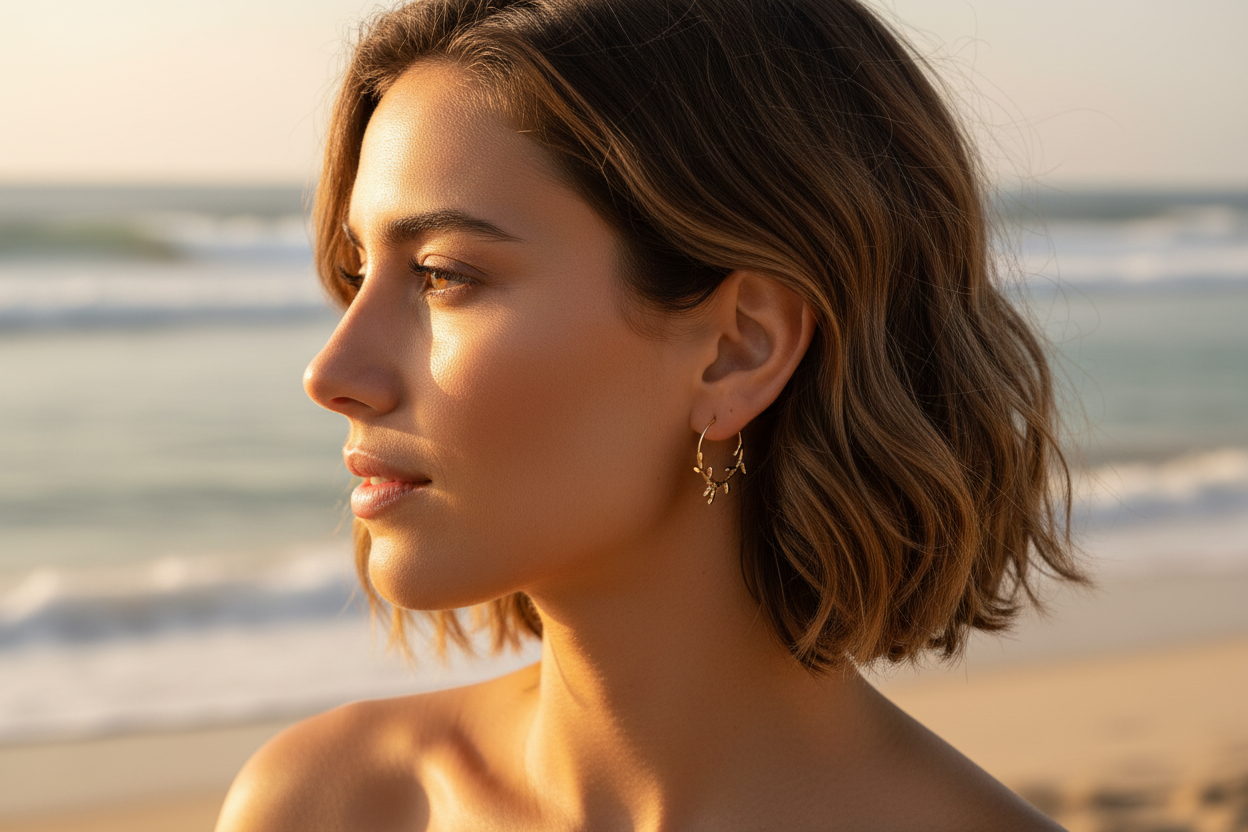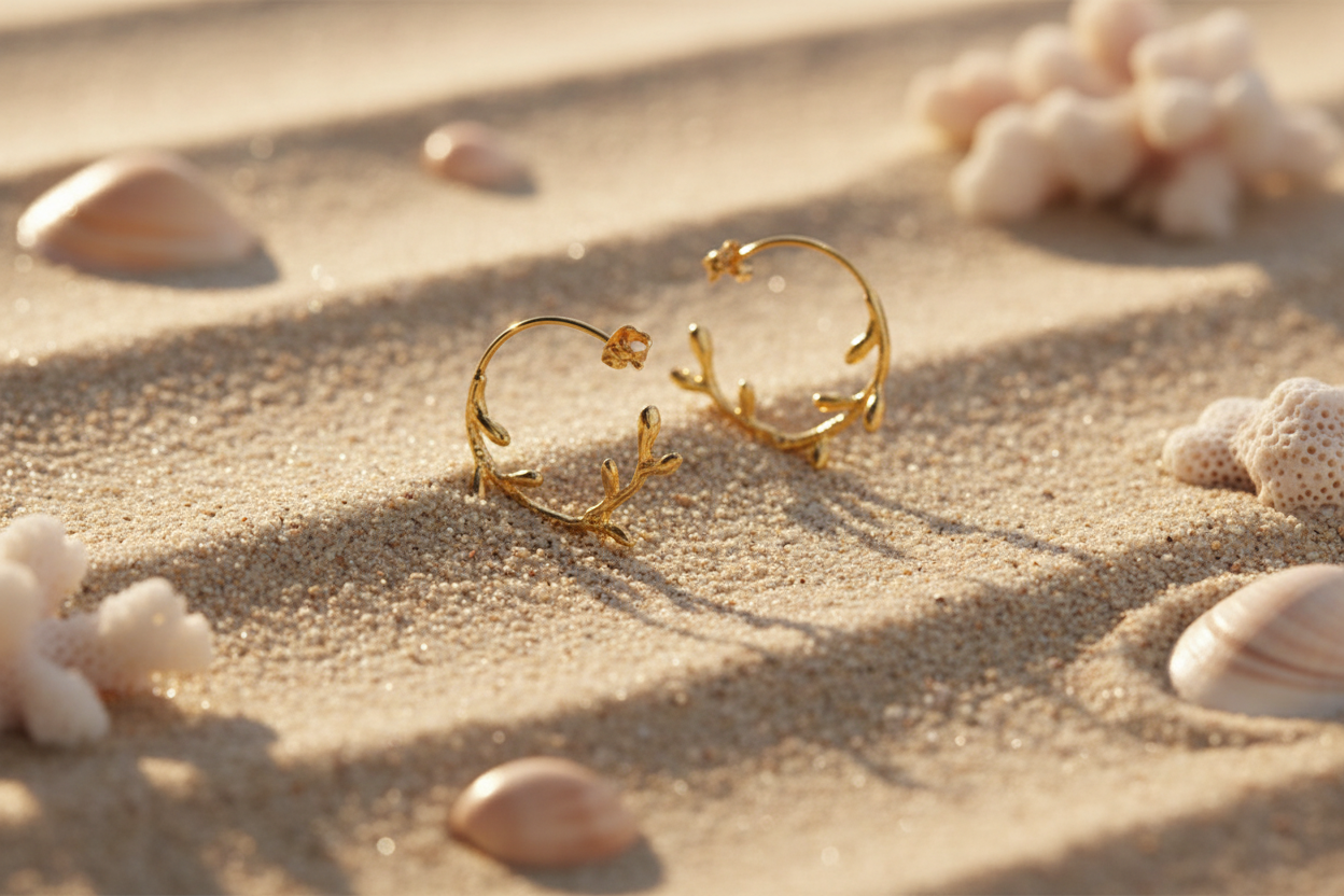 Coral Hoop Gold Earrings