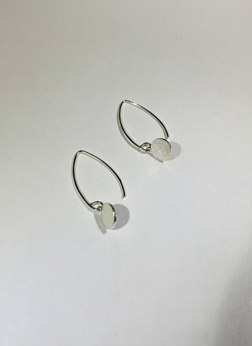 Crafted by BOO, these handmade earrings feature a dotty textured disc suspending 31mm from a hook design, adding a playful element to any attire while giving a stylish touch.