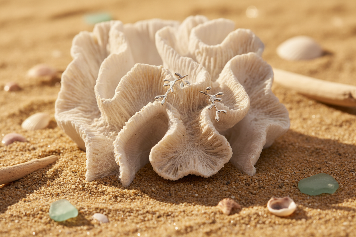 Organic Coral medium silver stud earrings