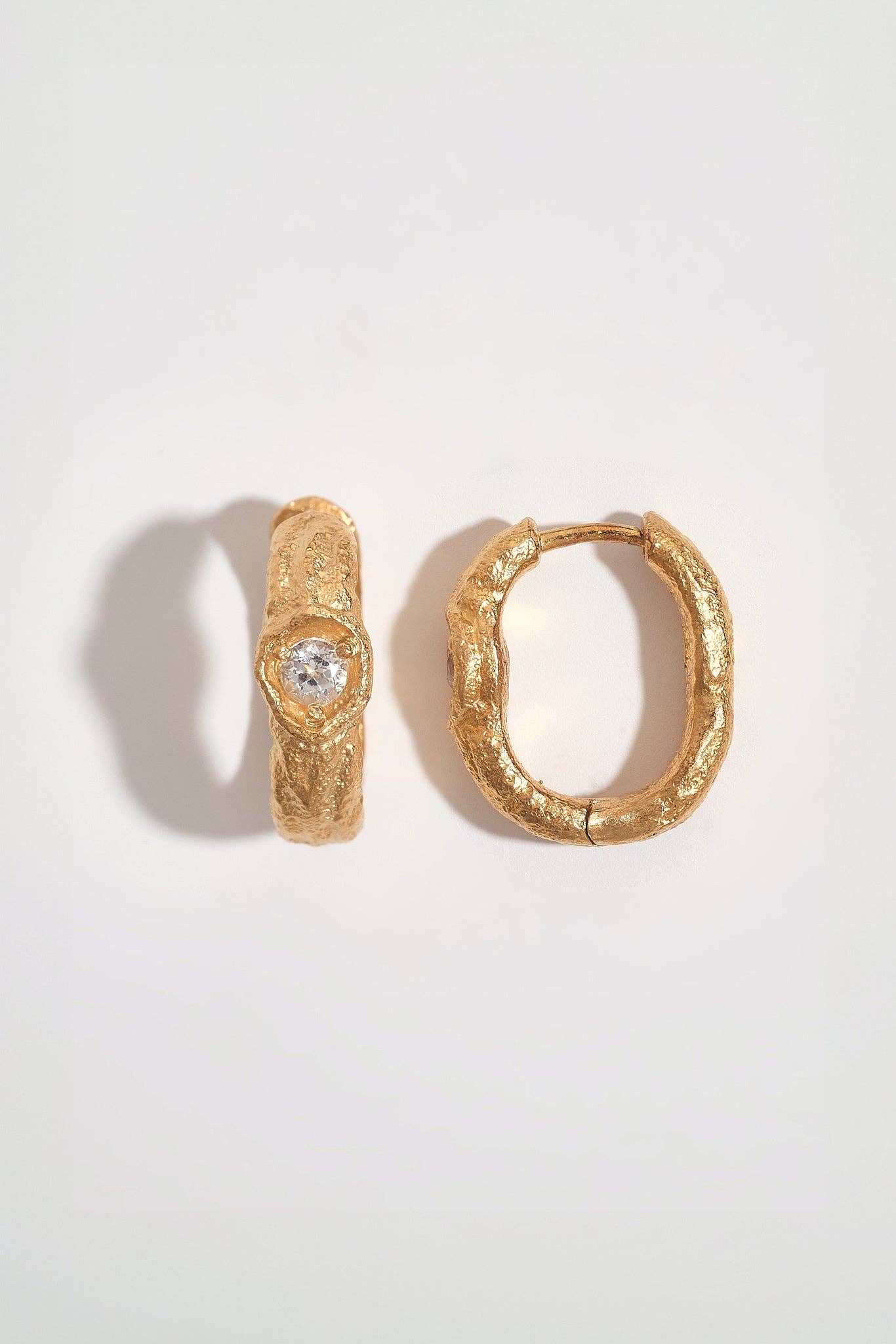 Product Details: * Size: Diameter: 15mm, Width - 4mm Gemstone - 3mm * Materials: Made with a solid base of 100% certified recycled 925 silver, plated with 14k gold vermeil (5x thicker than standard gold plating), and ethically sourced white topaz for sustainable jewellery you can feel good about. *