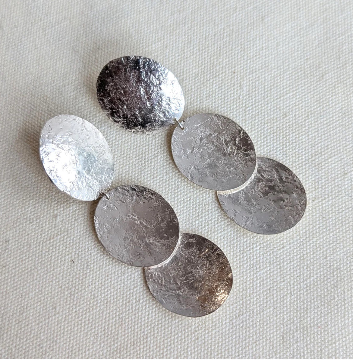 Pebble texture sterling silver earrings. These are lovely light drop earrings, and easy to wear from day to night!