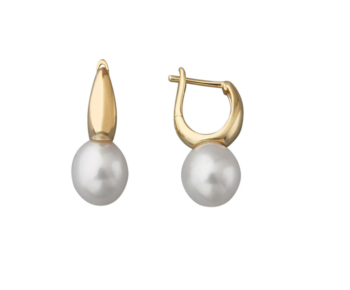Gold plated D shaped huggies with single freshwater pearl.