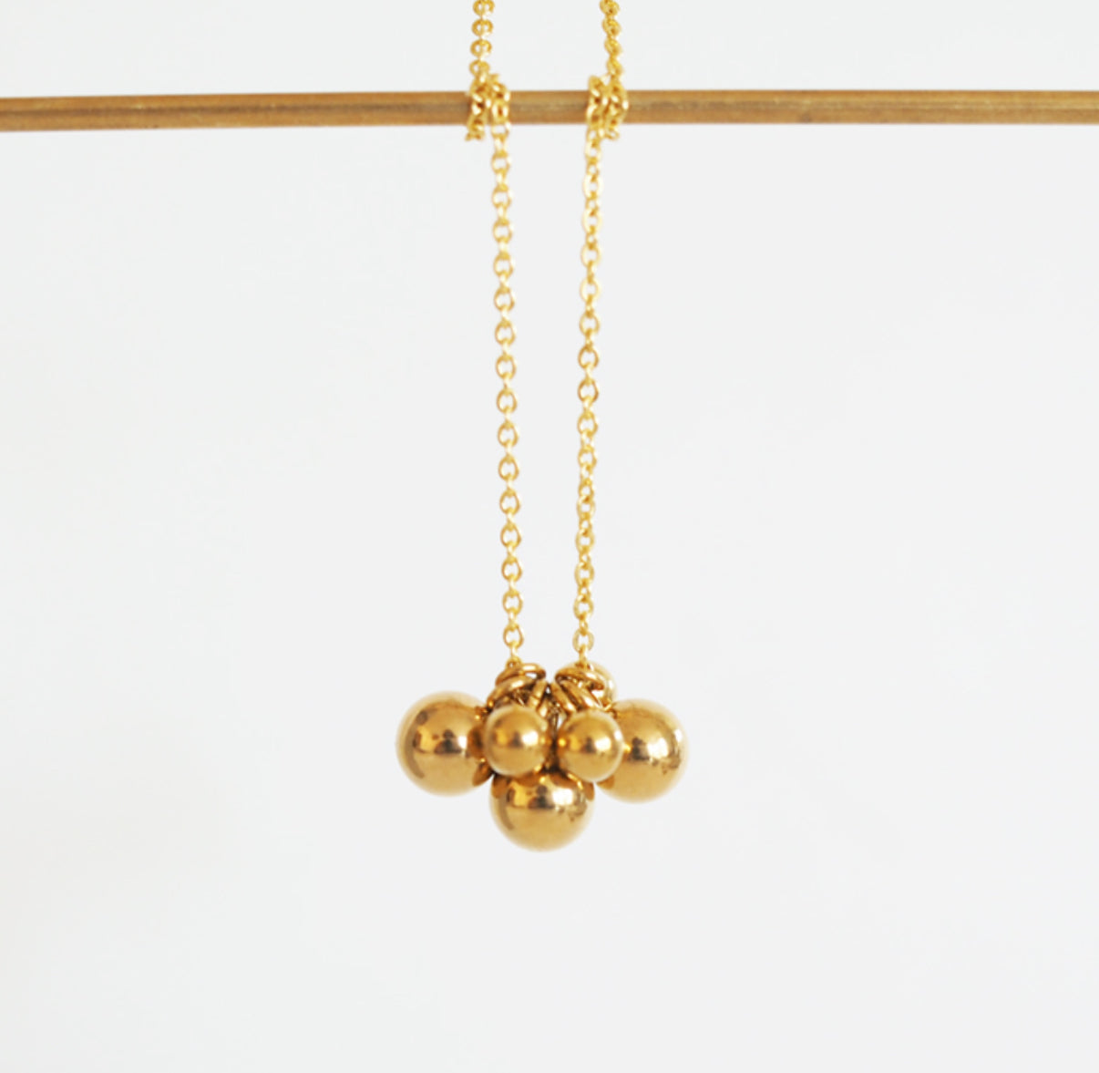 Clustered gold-plated stainless steel balls on a gold-plated chain.