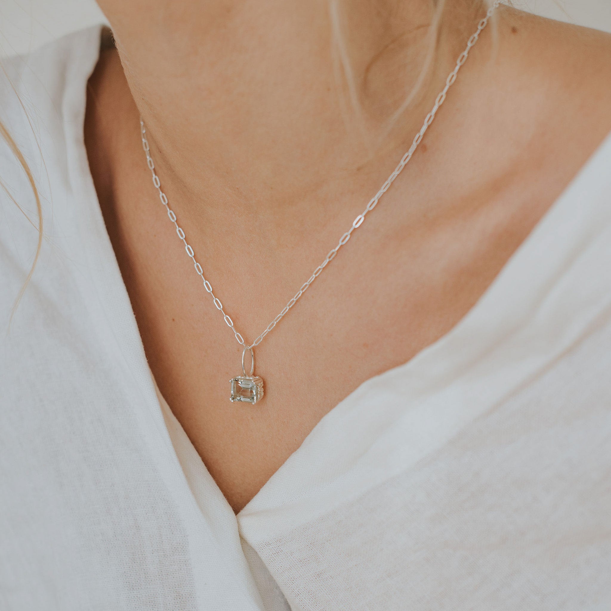 Crafted with meticulous care from recycled sterling silver, the necklace is elevated by a granulation technique that adds a touch of refinement to its organic charm. The centre piece of the necklace is a stunning 10x8mm green quartz stone that sits perfectly in the intricate setting.