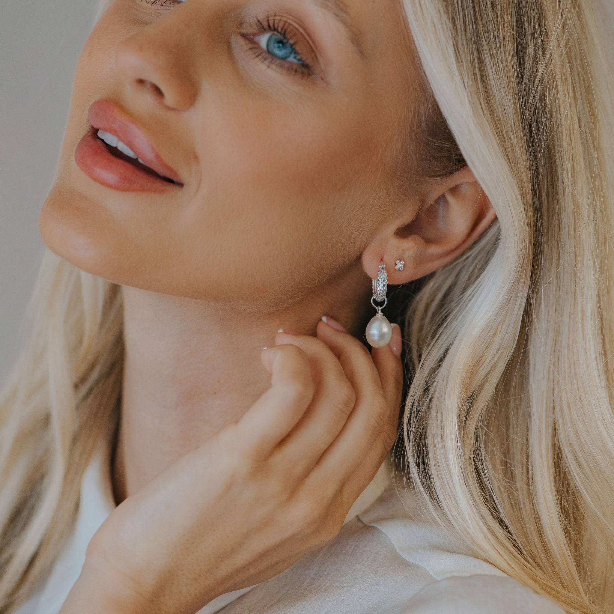 Silver Pearl Hoops