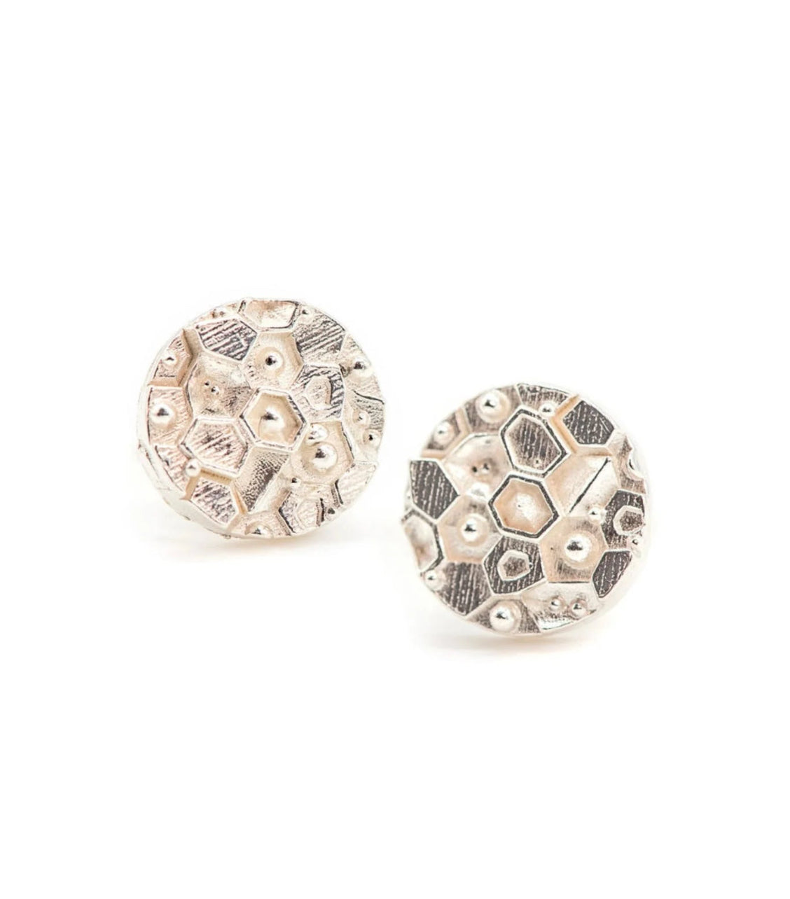 Introducing the Hemera earrings, named after the Goddess of Sunlight, these stunning recycled sterling silver earrings are the epitome of elegance. The unique geometric design, combined with added granulation, captures the light from every angle, creating a mesmerising sparkle that is sure to turn heads.