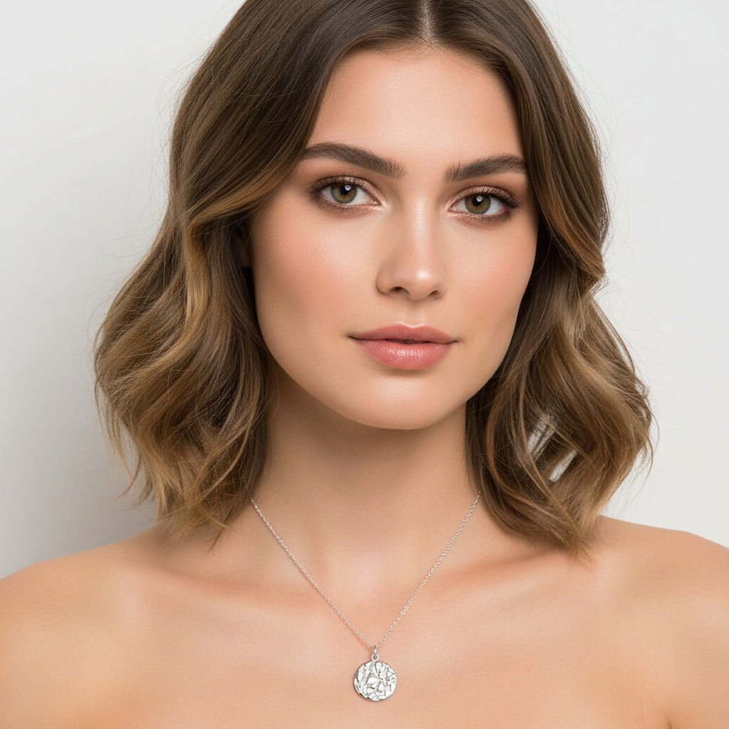 Sterling silver textured disc pendant