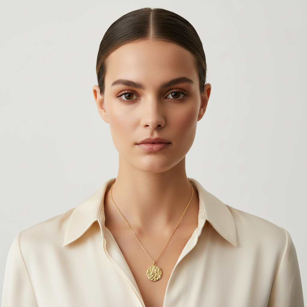 Softy Collection Large Gold Textured Disc Pendant
