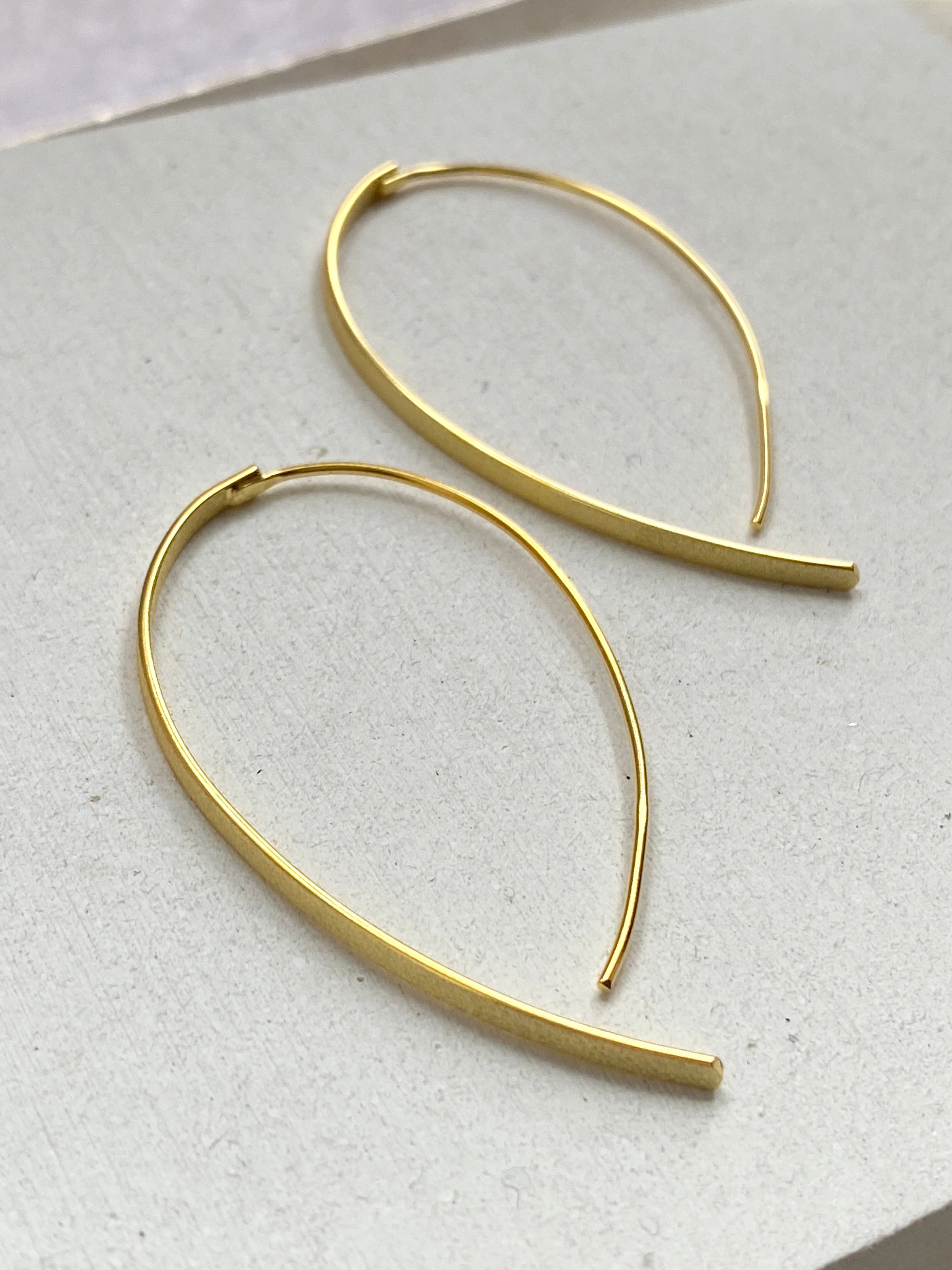 Crafted from brushed 18k gold, these threader hoop earrings exude an elegant and contemporary appeal. Perfect for any occasion, their stunning curve design adds a touch of sophistication to any outfit.