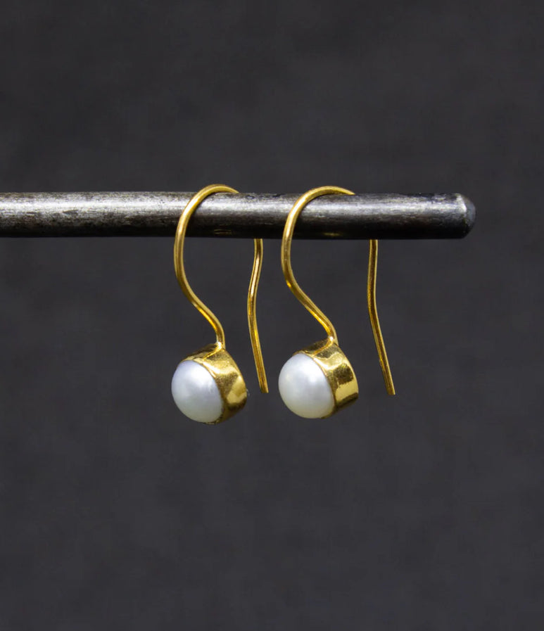 Classic white freshwater pearl simple drop earrings, handmade in sterling silver or 18k gold plated silver. Easy to wear drop earrings that can be dressed up or down.